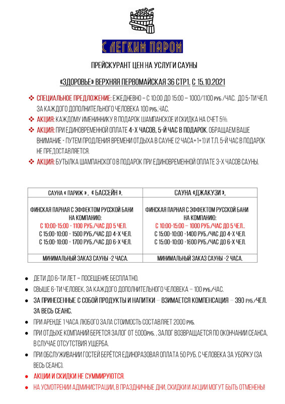 Сауна Здоровье на 9-й Парковой 35 / Зал Париж (после ремонта!)